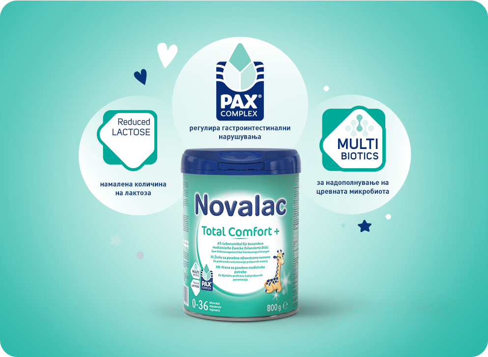Млечна формула Novalac Total Comfort + за нутритивно регулирање на повеќе гастроинтестинални нарушувања кај доенчиња: