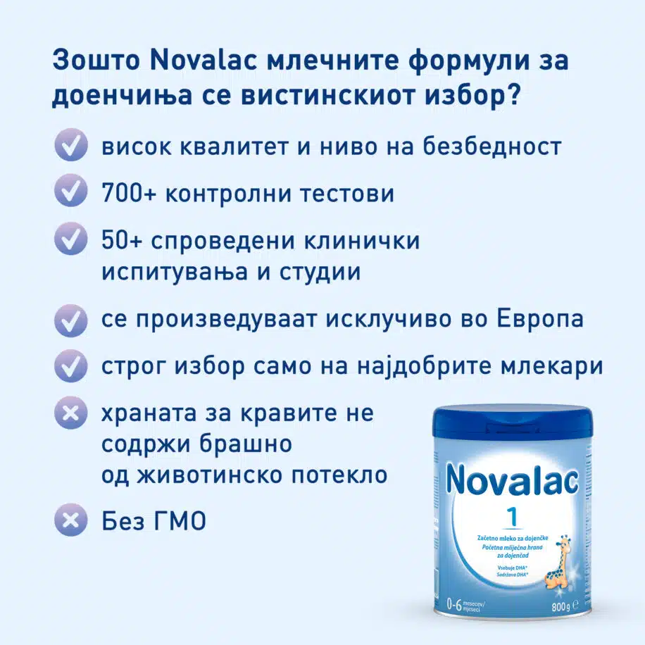 Novalac 1 е почетна млечна формула наменета за доенчиња од раѓање до 6 месечна возраст, доколку мајките не ги дојат или само делумно ги дојат.