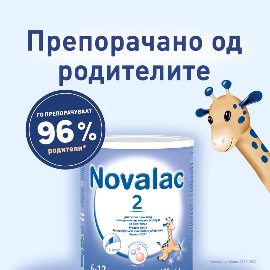 Мајчиното млеко е најдобра храна за доенчиња која воедно е прилагодена на нивните потреби. Често се случува доењето да биде проблем и покрај трудот и истрајноста на мајките или мора да се прекине поради болест, односно количината на мајчино млеко не ја задоволува потребата на доенчето. Во тој случај најдобра замена за доење е употребата на адаптирано млеко кое ги содржи сите хранливи состојки кои се потребни за здрав раст и развој на детето. Млечните формули Novalac употребувајте го откако ќе се советувате со стручни лица од областа на медицината, фармацијата или со други стручни лица кои се одговорни за грижата на мајката и детето. Со кликнување на копчето за продолжување ќе ви бидат достапни информации за адаптираното млеко Novalac. Ако се согласувате да продолжите прифатете интернет страната Novalac.mk да ве информира за адаптираното млеко за доенчиња, по ваша желба.