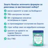 Составот на млечните формули Novalac е во склад со европските стандарди за детската млечна храна и не содржи генетски модифицирани организми (ГМО), а не содржи ни глутен.