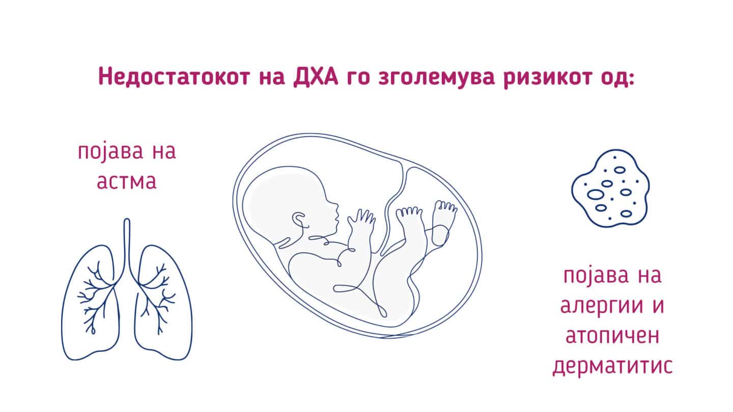 ДХА е многу важна за развојот на мозокот и очната мрежница на фетусот во третиот троместар од бременоста и до 24-от месец од животот на детето.